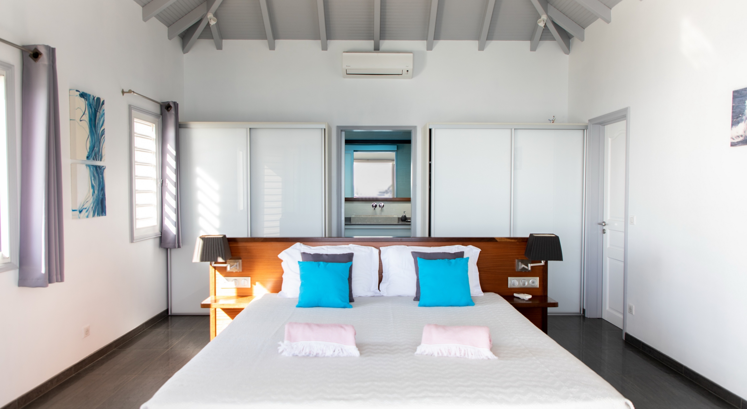 Bedroom 1: Bedroom with a king-size bed, A/C, TV, safe, ocean view and en-suite bathroom with shower, vanity and wc. Connected to bedroom 2. 2 guests maximum.